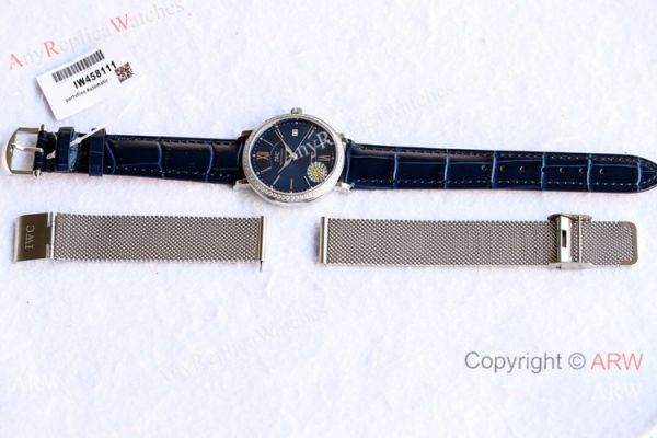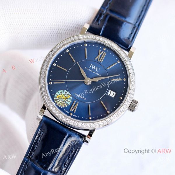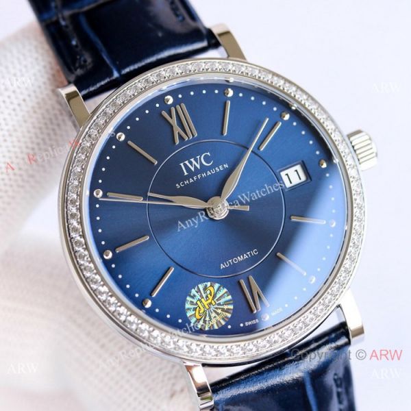 Swiss Replica IWC Portofino Blue Dial Diamond Watch 37mm Lady