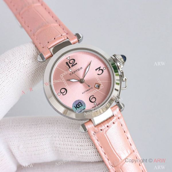 Swiss Cartier Pasha de Ladies 32mm Watch Automatic Pink Leather Strap