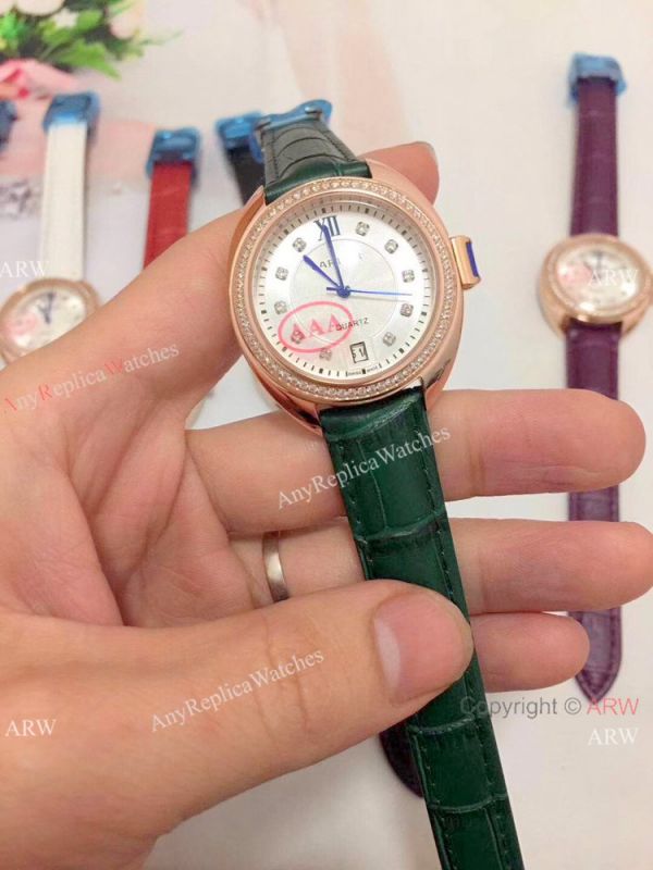 Rose Gold Case - Cartier White Dial With Diamond Markers Cartier Diamond Bezel Cartier Watch