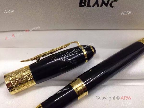 Copy Montblanc Daniel Defoe Writers Edition Rollerball Pen - Black & Gold Clip