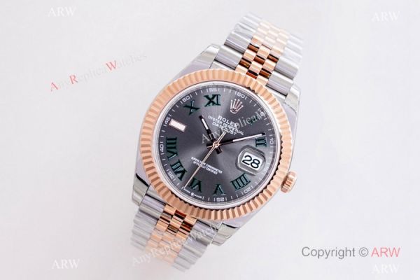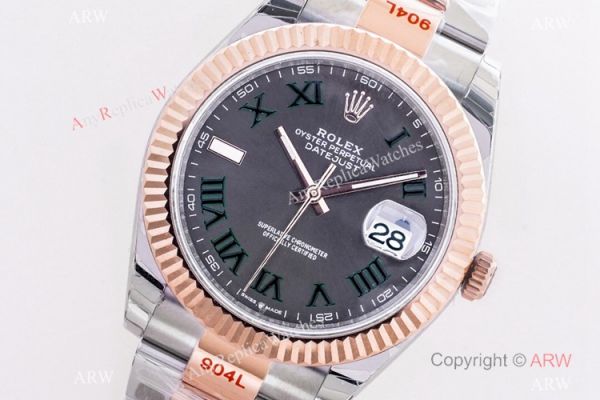 Swiss Grade Clone Rolex Wimbledon Datejust II Cal.3235 2-Tone Rose Gold Green Roman 41 Watch