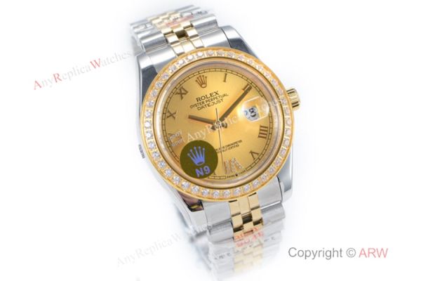 Rolex Datejust II 41mm - Gold Dial - Diamond Bezel -Diamond VI IX Roman Markers - 904L Steel & Gold Jubilee Band