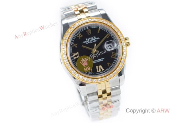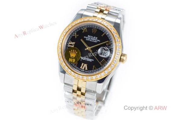 N9 Swiss Grade 1 Rolex Datejust II 904L 2836 Watch 2-Tone Black Roman Dial