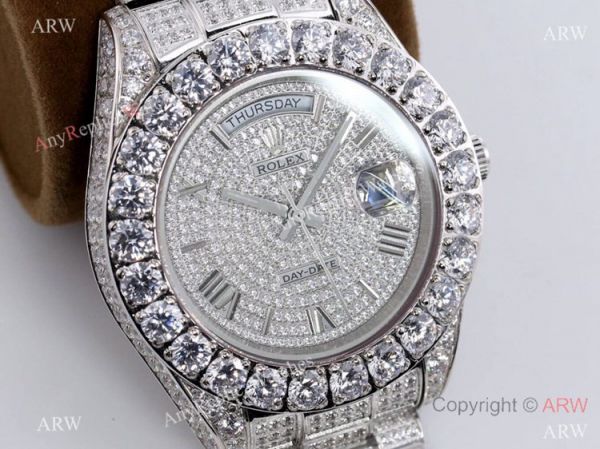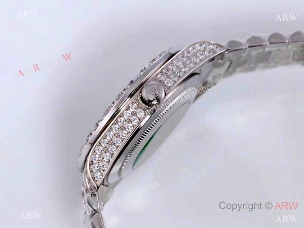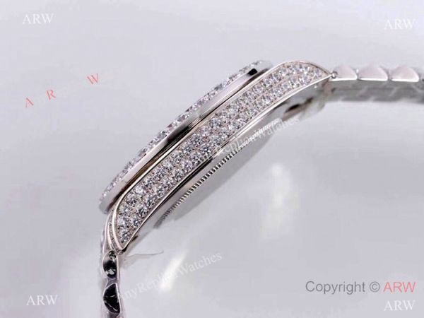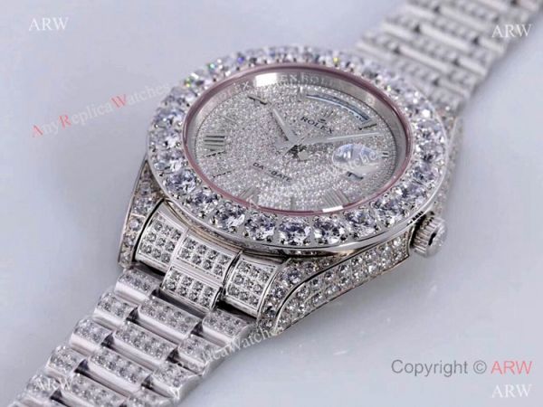 Iced Out Diamond Rolex Day Date 39mm Copy Watch Roman Markers