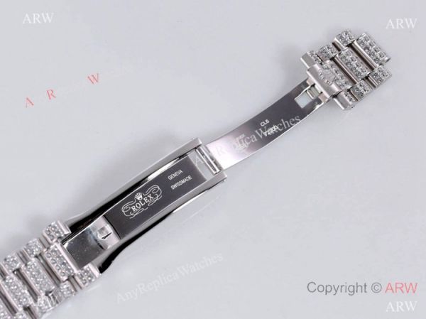 Diamond Bezel & Silver Diamond Band & Diamond Face Rolex Day Date Bust Down watch