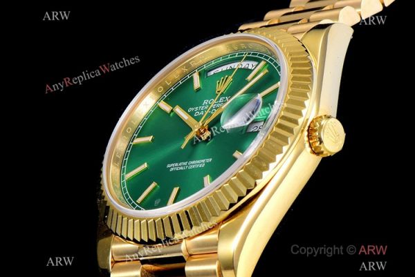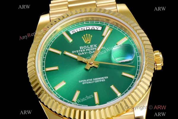 GM Factory Rolex Day Date 40MM Replica Watch. Everything is detailed and same as original. Buy now and 100% satisfaction guaranteed. You will receive the same Yellow Gold Day Date 40m Mens Watch as pictures.
