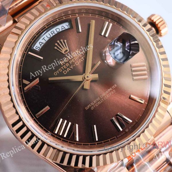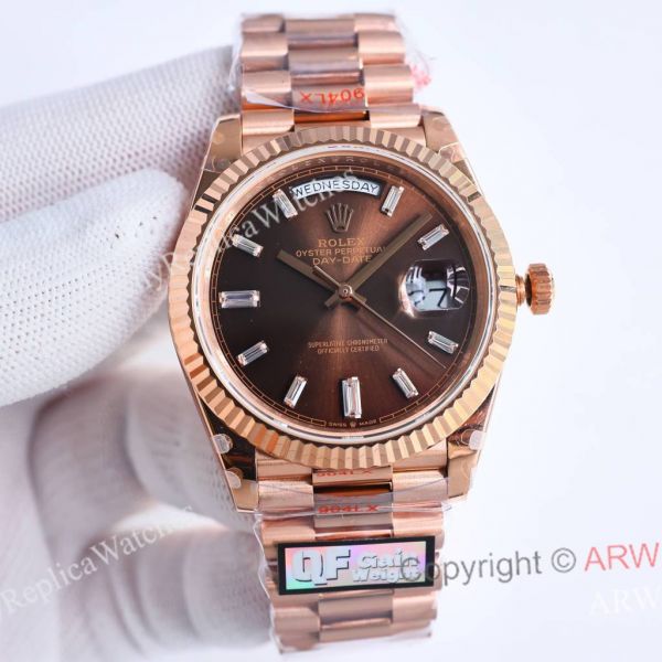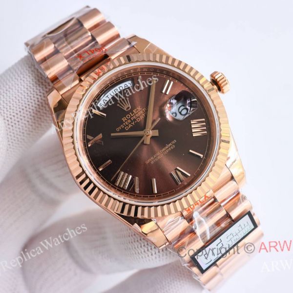 This 2024 Rolex Day-date 40 Brown Ombre Replica Watch from Q Factory V5 gain weight edition, each watch you will receive is 180~186 grams, the heaviest weight in the market, all perfect details. You will receive the exact one shown in the images listed. 2 years free warranty and lifetime repair service.