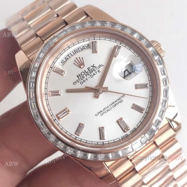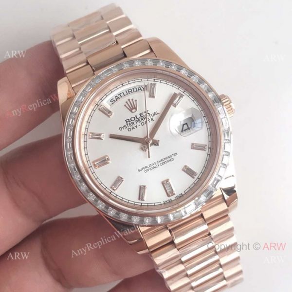 This is New Swiss Replica Rolex Day-Date II Rose Gold Baguette 41mm Watches With New Band, Upgraded To The Newest Version.