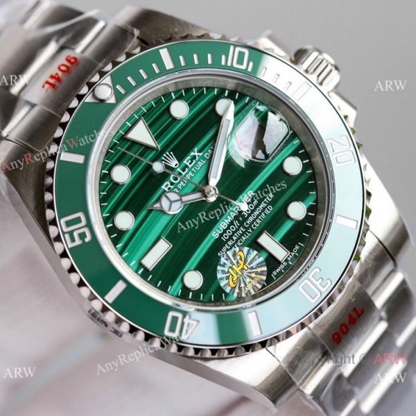 904L Stainless Steel Case Malachite Dial Green Ceramic Bezel Submariner Watch
