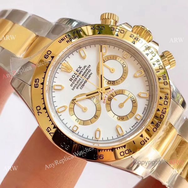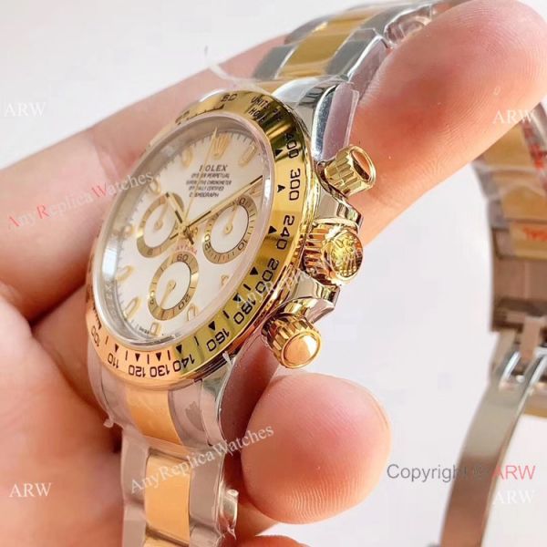 1:1 Best Clone Rolex Daytona Two Tone White Dial Watch Noob Factory 904L 4130 Movement