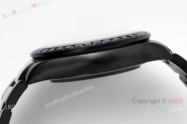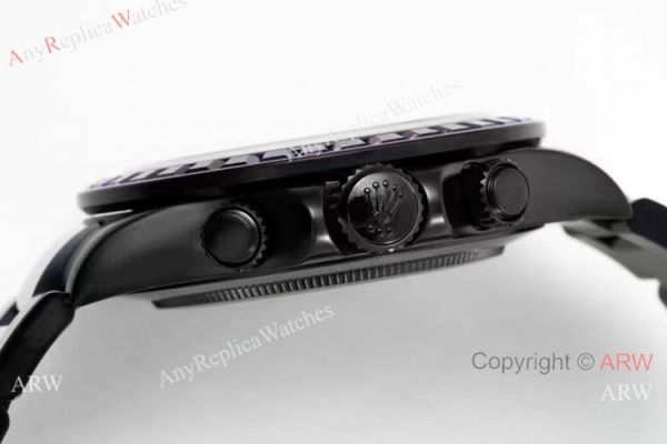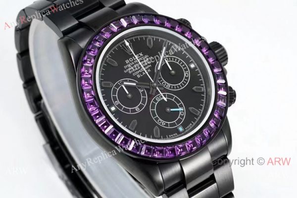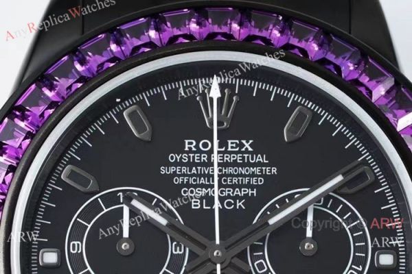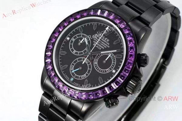 Daytona DLC coated watch case - Black Dial - Pink Diamond Bezel - Black Dlc coated strap 40mm for men