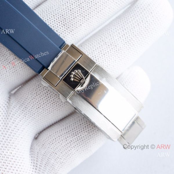 316L Stainless steel Case Gray Dial Blue Solid Ceramic Bezel Blue Oysterflex Rubber Watch with Scratch Proof Sapphire Crystal