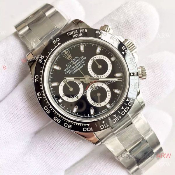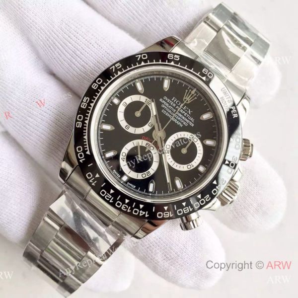 Special introduction:AAA Grade Replica Rolex Cosmograph Daytona Chronograph Watch Black Face Stainless Steel Watch band.
