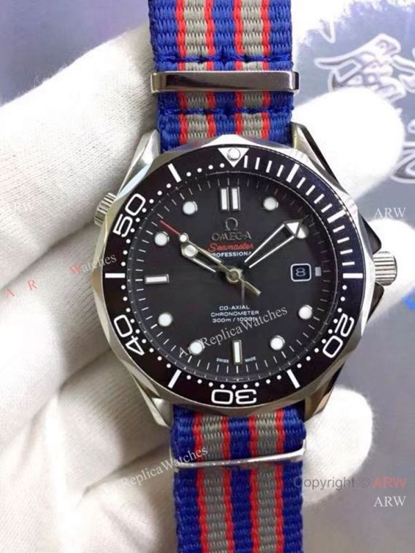High Quality Omega James Bond Replica Watch SS Blue Dial Nato Strap