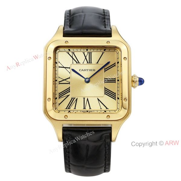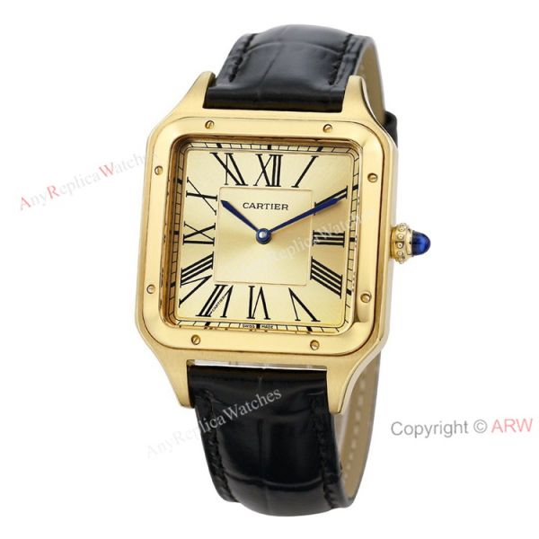 Swiss Superclone Yellow Gold Cartier Santos-Dumont Leather Strap Watch For Men And Women