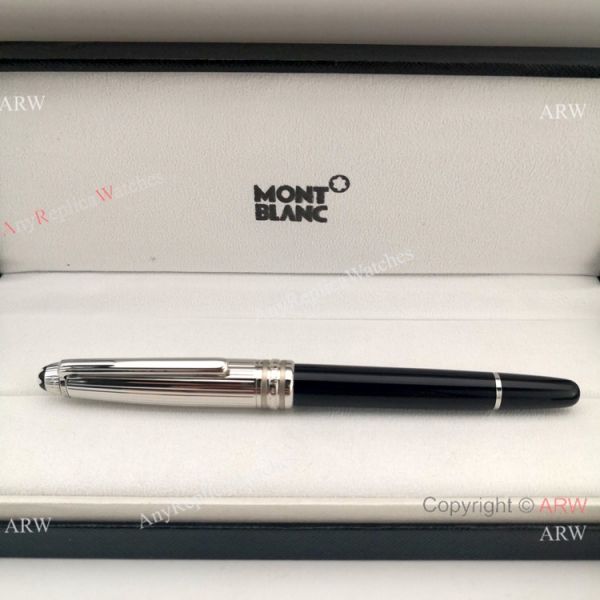Silver Cap & Black Precious Resin Barrel Mont Blanc Fake Pens