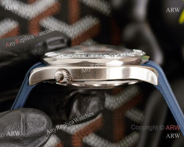 316L Steel Case Blue Rubber Strap Black Dial and New Silver Bezel