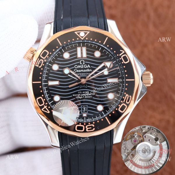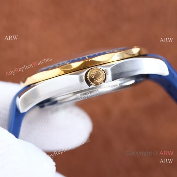 Swiss Quality Copy Omega Seamaster 300m Citizen Watch Two Tone Rose Gold Blue Rubber Strap