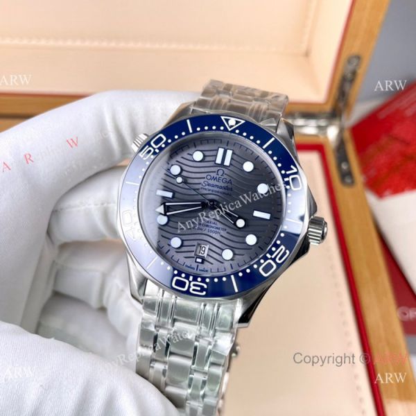 316L Stainless Steel Case & Band Gray Face Blue Ceramic Bezel Omega Copy Watch