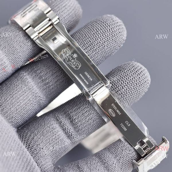 Rolex crown logo micro etched at 6 o'clock in the crystal, screw links, Solid end links.