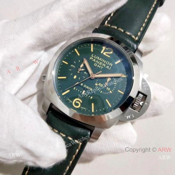 316L Stainless Steel case, Green Dial, Brown Markers, Green leather band with PANERAI personalised buckle