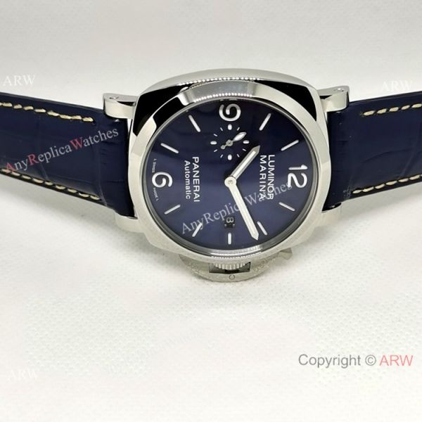 316L Silver Steel Case Blue Leather Bracelet Blue Dial Panerai Watch