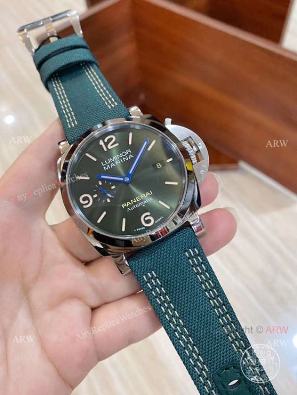 Check the bottom images for more detail of the Replica Panerai Luminor Marina Green Dial Watch.
