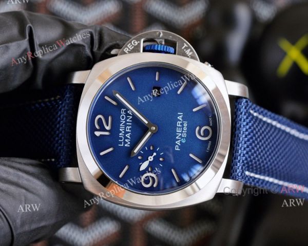 Silver Steel case, Blue Dial, Blue leather band with PANERAI pin buckle