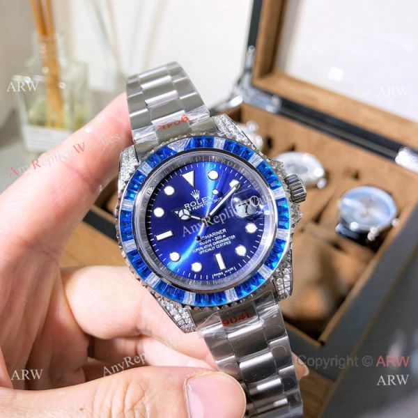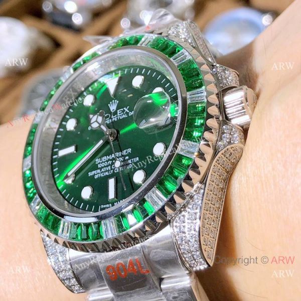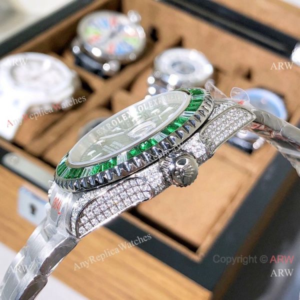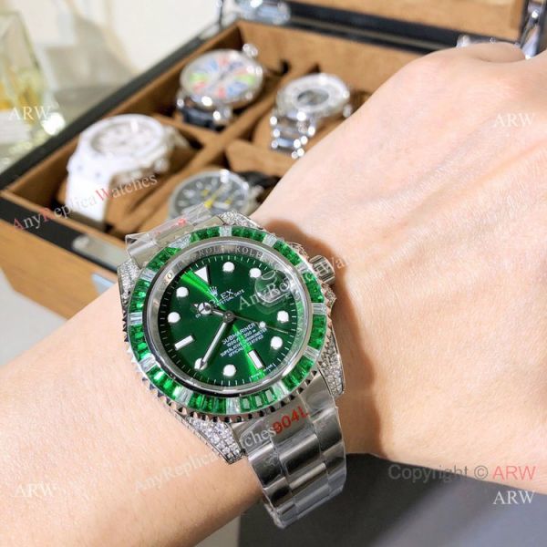 316L Steel case / Rainbow Diamond bezel / Green Dial Rolex Copy Watch Buy Online