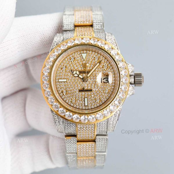 Luxury replica Rolex Submariner 42mm diamond two tone gold watches are for sale now.