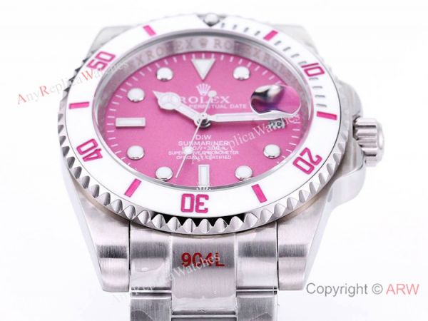 Rolex DiW Submariner watch: 904L Stainless steel case Candy pink dial White Ceramic bezel