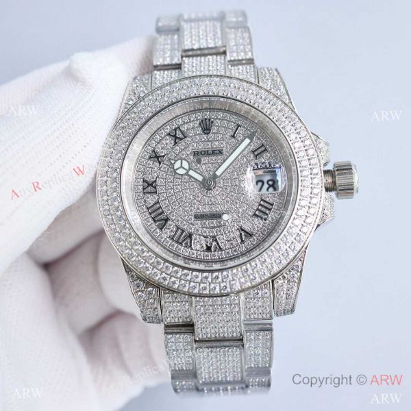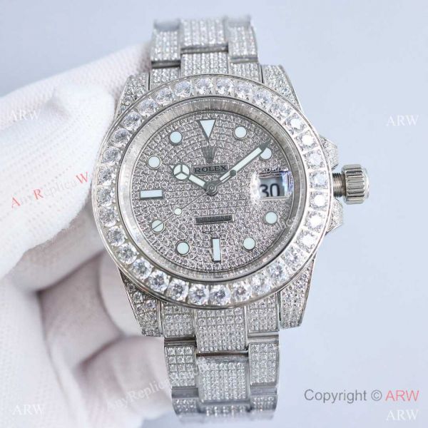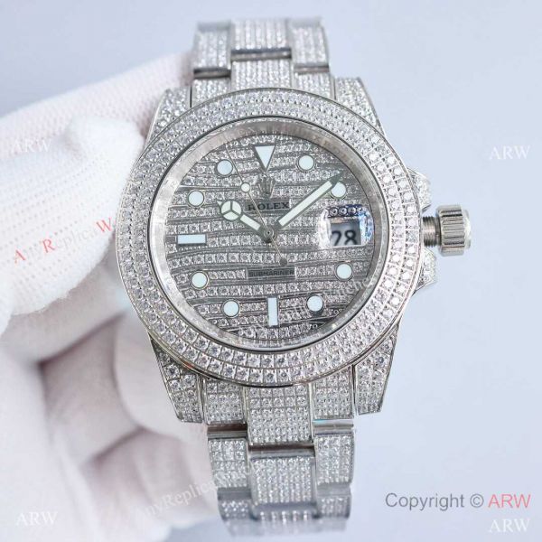 The best quality Replica Rolex Submariner Full Diamonds Watch for sale - PERFECT DETAIL.