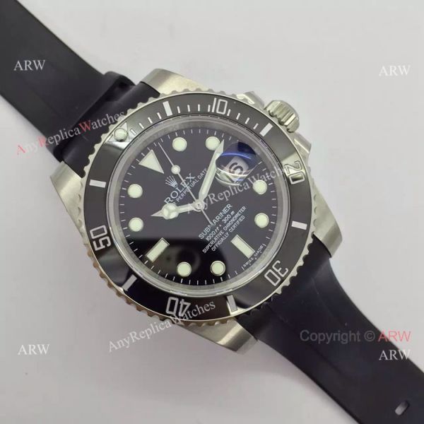 With Black Rubber Watch Band And Rolex Pin Buckle