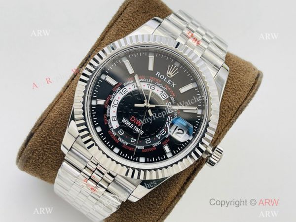 VR F Rolex World Timer watch Rolex Sky-Dweller DiW Black Dial 904L Steel Swiss 9001 Watch 42mm