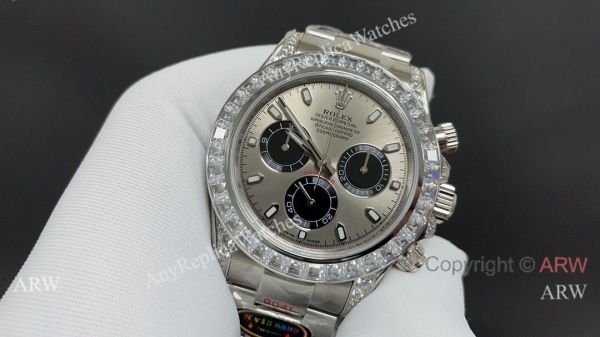 Noob V13 Super Clone Rolex Daytona Square Diamond 40 Watch Gray Black Dial 904l Stainless Steel