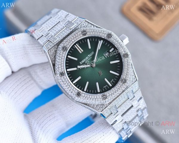 Swiss Replica Iced Out Audemars Piguet Royal Oak Jumbo Extra-Thin Watch for sale. We only sell the highest quality Audemars Piguet replicas. we are experienced on shipping to worldwide with best way. Fast shipping - Customer satisfaction guaranteed.