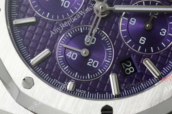 This Replica Audemars Piguet Royal Oak Purple Chronograph watch we sell are Swiss Grade from BF factory, 2 years warranty, TOP quality case, strap and movement. You will receive the same watch as shown.