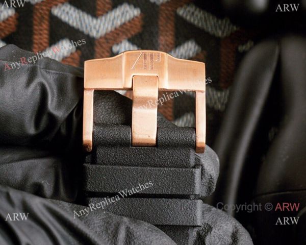 All the appropriate Audemars Piguet markings in all the appropriate places, including the clasp, dial, and back.