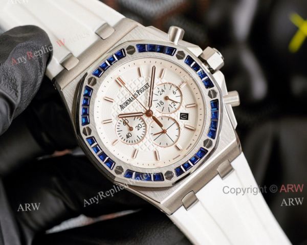 316L Stainless Steel Case - Black Rubber Band with origin pin tang style - White Dial Audemars Piguet Rainbow Watch