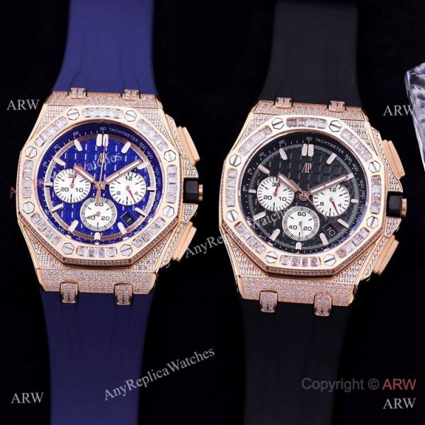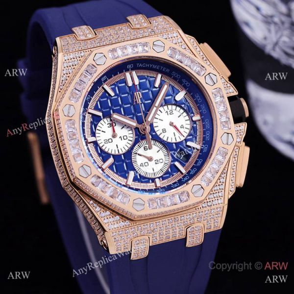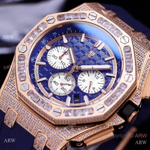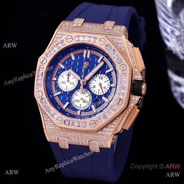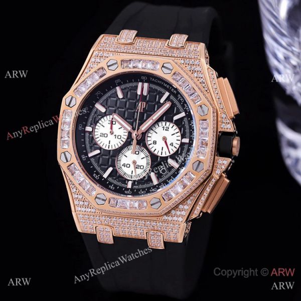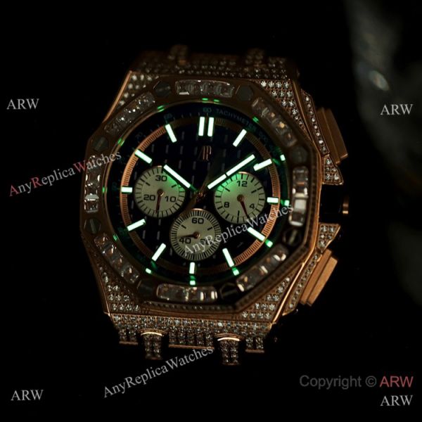 Iced Out Audemars Piguet Royal Oak Rose Gold Chronograph Watches
