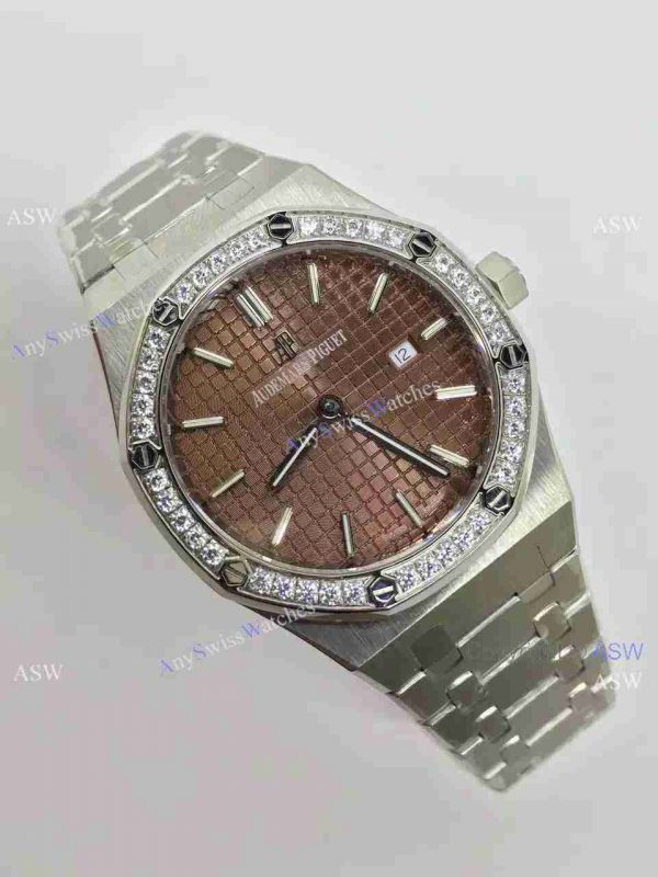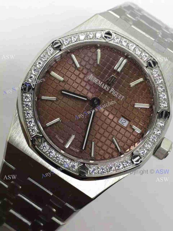Swiss Fake Audemars Piguet Royal Oak Diamond Bezel Brown Dial Watch