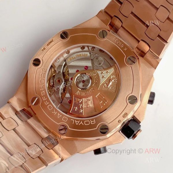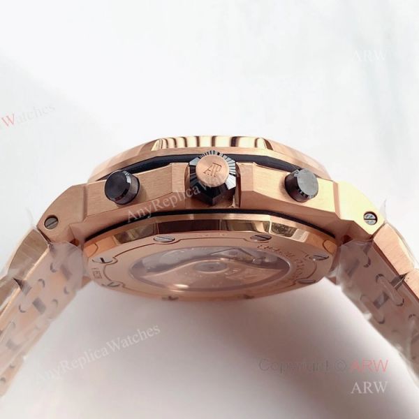Rose Gold plated Watch Case - Slate black dial with “Méga Tapisserie” pattern with Black Ceramic button - Audemars Piguet Rose Gold Steel Band Audemars Piguet Watch