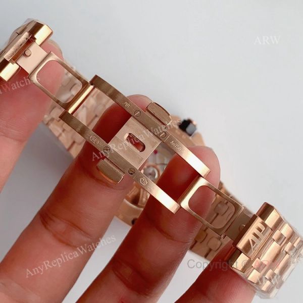 Watch band: Audemars Piguet Rose Gold Steel Band with AP Logo on Buckle