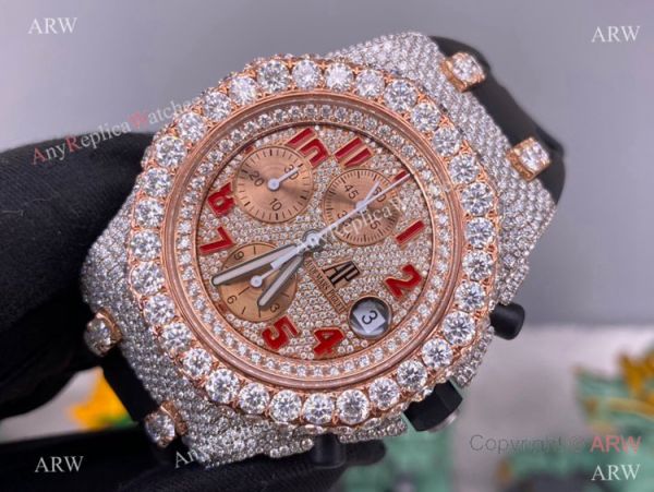 Iced Out Audemars Piguet Royal Oak 1-1 3126 Watch Rubber Strap