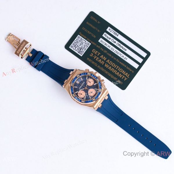 Water resistant case resists water penetration; no swimming or showering recommended with any original or Audemars Piguet 26236or Watch Replica.