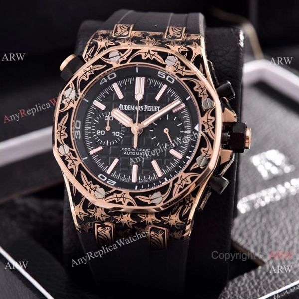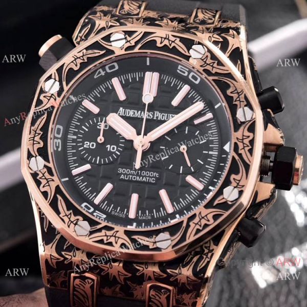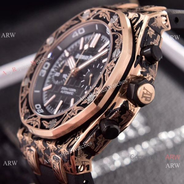 Copy Audemars Piguet Diver Rose Gold Engraving Watches Chronograph Movement