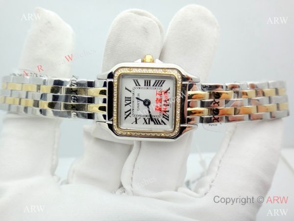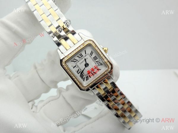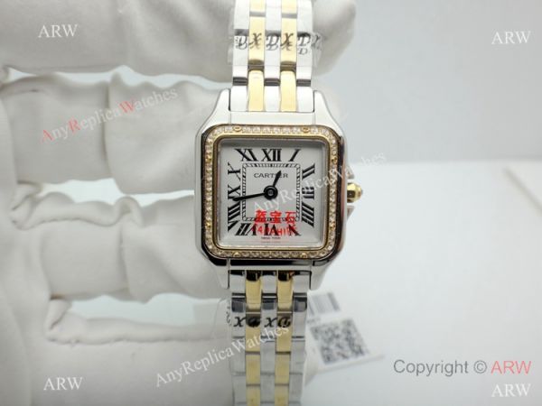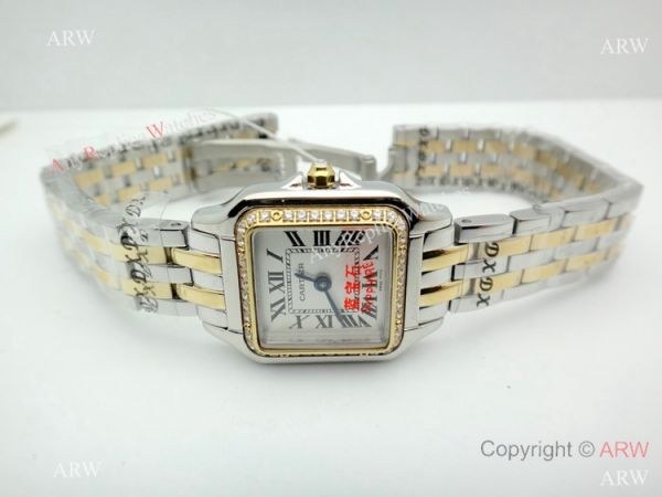 Copy Cartier Panthere Two Tone Diamond Bezel Watch 22mm Ladies