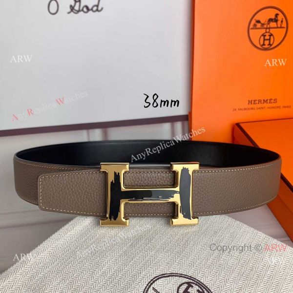 NEW! Replica Hermes Brush belt buckle & Kahki Reversible Leather strap 38 mm