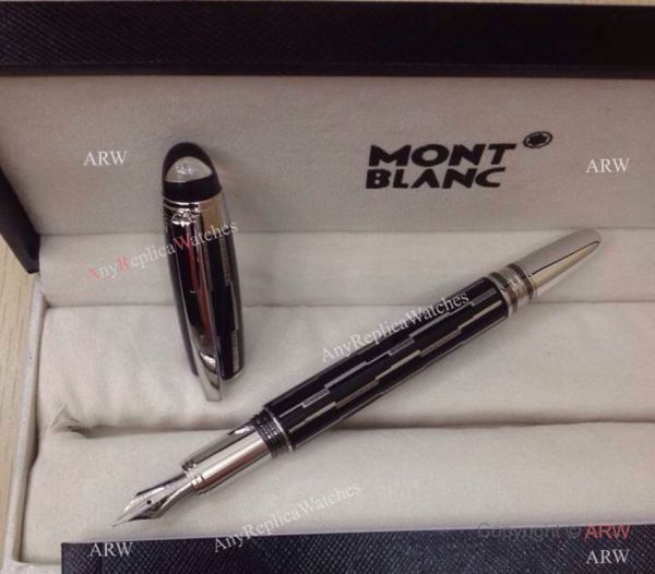 Silver Clip & Black Mystery Replica Mont Blanc Fountain Pens