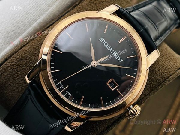 Bracelet Material: Black Leather Bracelet with Audemars Piguet Logo on Buckle